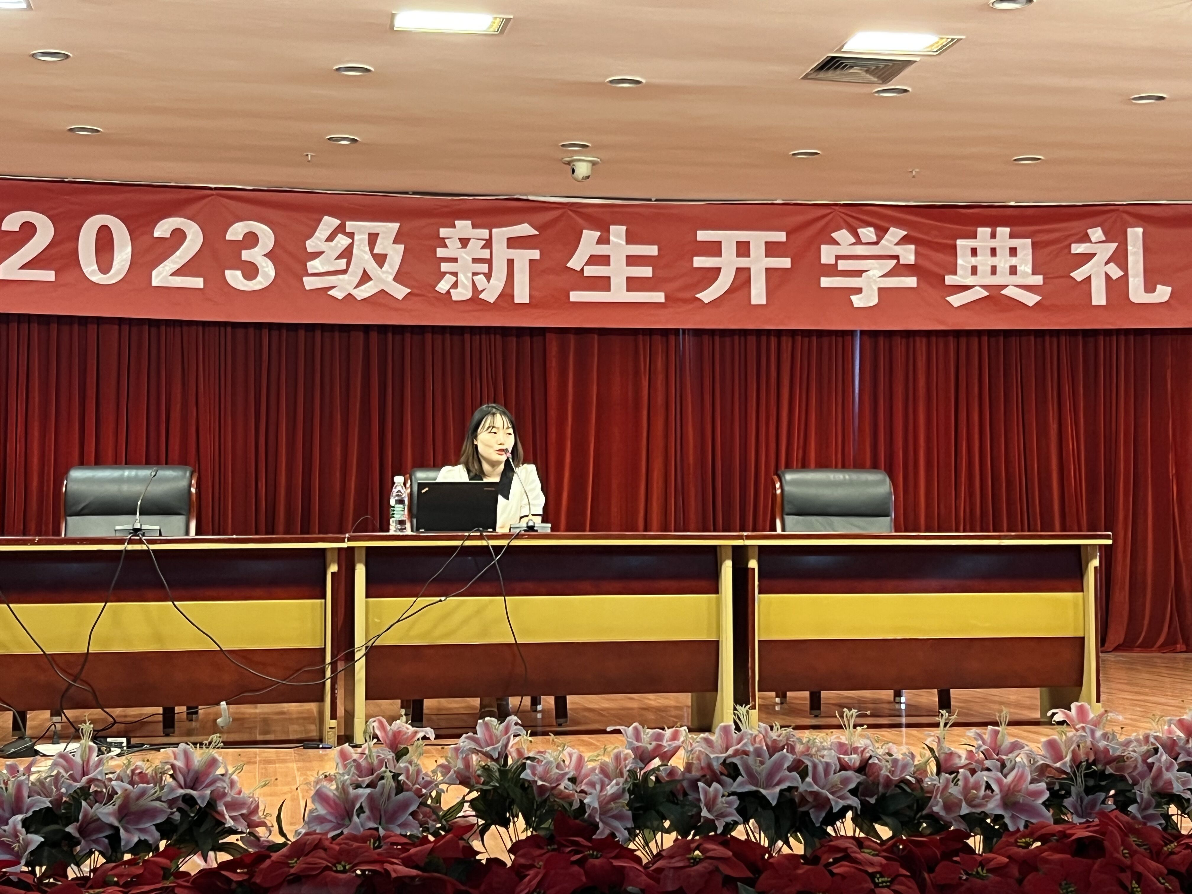 2023年9月5日上午,2023级新生开学典礼在学校图书馆三楼会议室举行。党委宣传部部长、政策法规处处长王静、系主任丁艺、党总支书记杨晓蕾、系副主任何伟、各教研室主任、2023级新生班级任课教师代表、教学组长、学工组长、就业干事、团总支书记、全体辅导员出席典礼。主任助理赵铁柱主持典礼。
