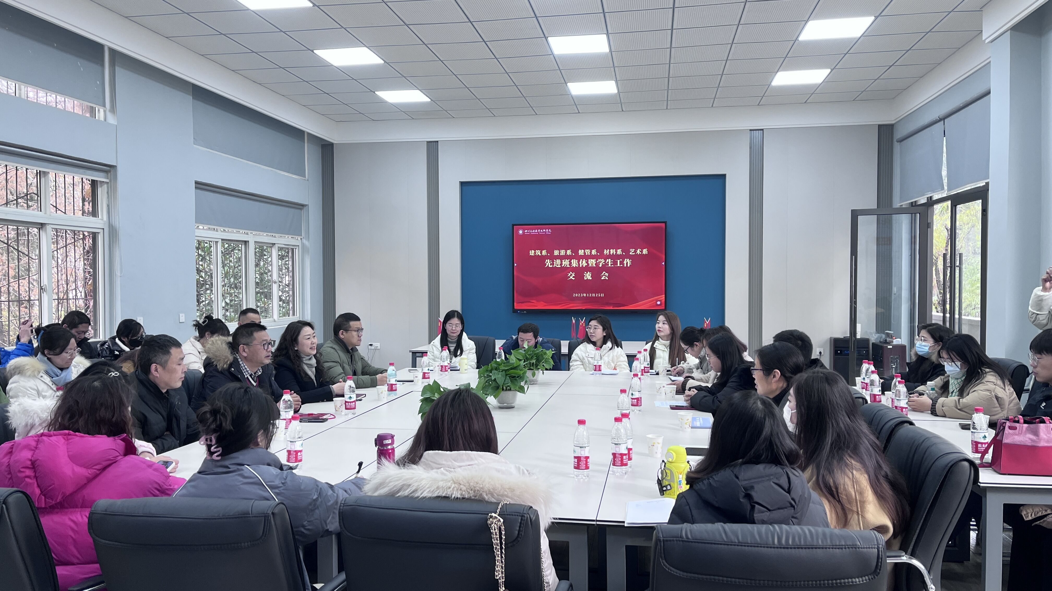 为交流学生工作经验、共同提高育人水平,12月25日下午,建筑系、旅游系、健管系、材料系和艺术系联合召开先进班集体暨学生工作交流会。交流会在艺术系党建活动室举办,由党总支书记杨晓蕾主持,建筑系党总支书记曾令俊、旅游系党总支书记余立勤、健管系党总支书记谢飞及5个系的学工组长、辅导员共计40余人参加本次交流活动。