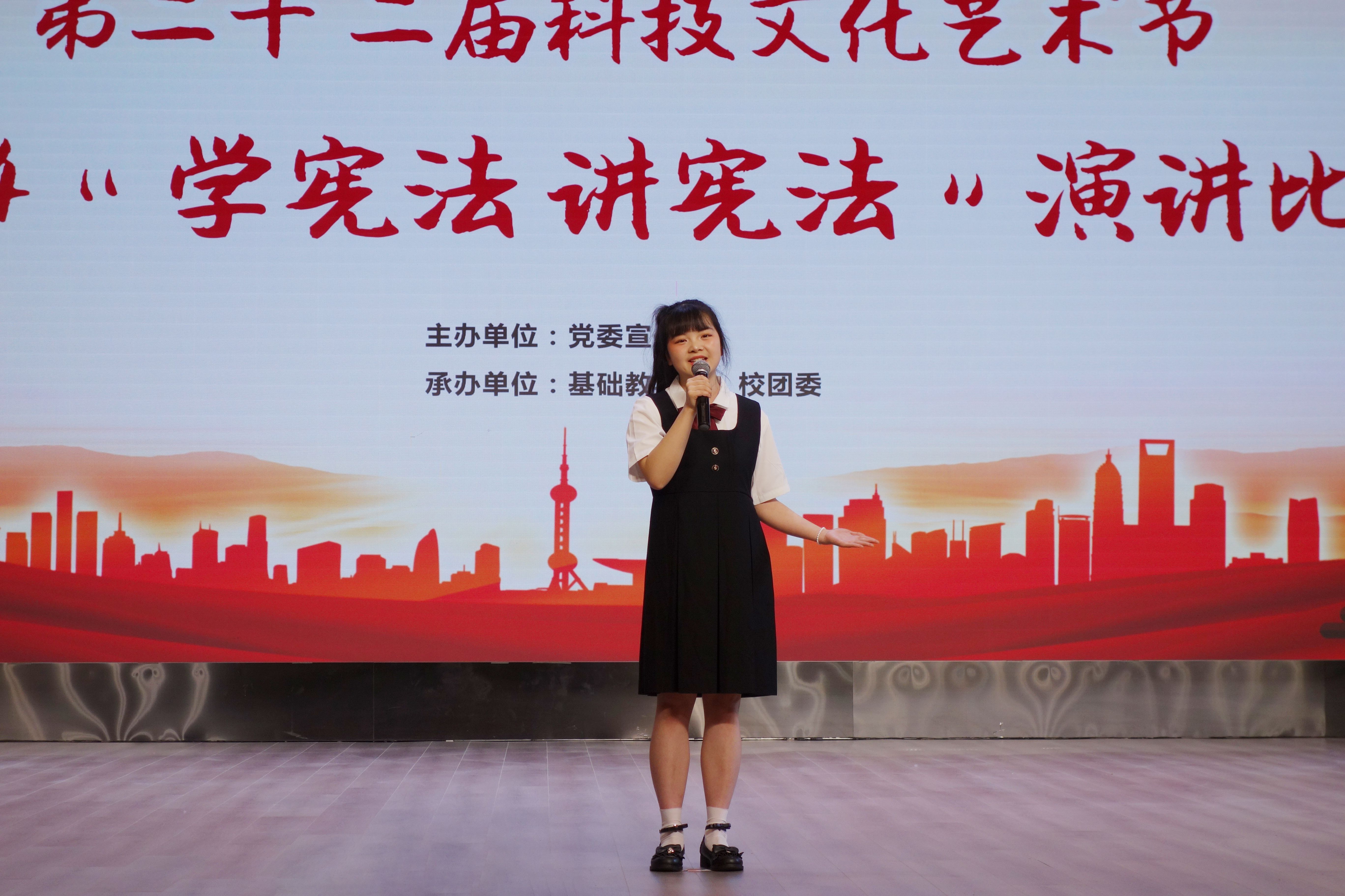 来自全校各系的12名参赛选手紧扣演讲主题,从社会热点、案例故事、自身体会等方面切入宪法主题,他们充沛自然的情感、沉着稳健的台风、富有感染力的表现赢得在场观众的强烈共鸣,现场不时响起阵阵掌声。