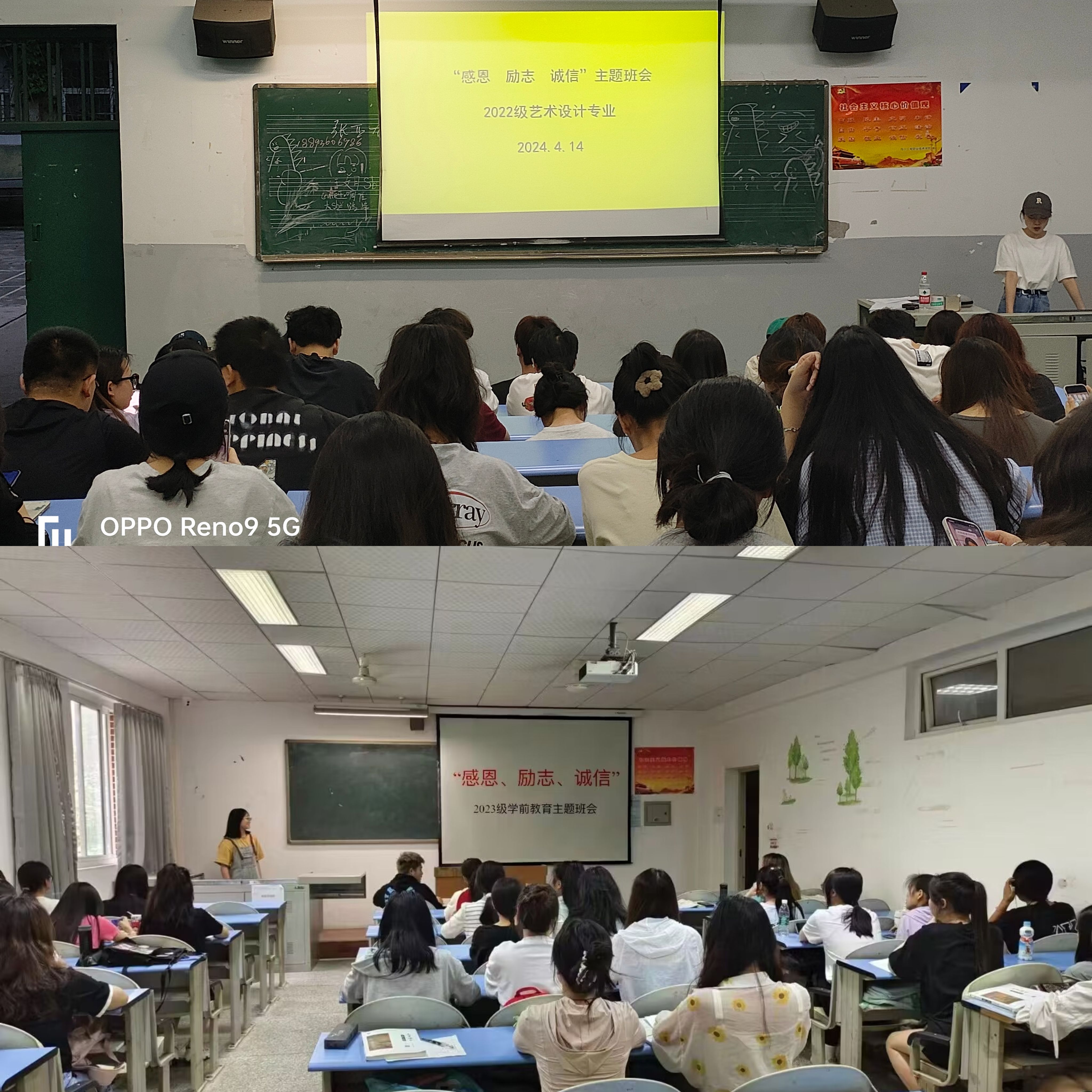 “感恩 励志 诚信”主题教育是资助教育的重要内容之一,艺术系每学期都会以此为主题开展主题班会活动,打造资助育人新格局,切实提升资助育人实效。