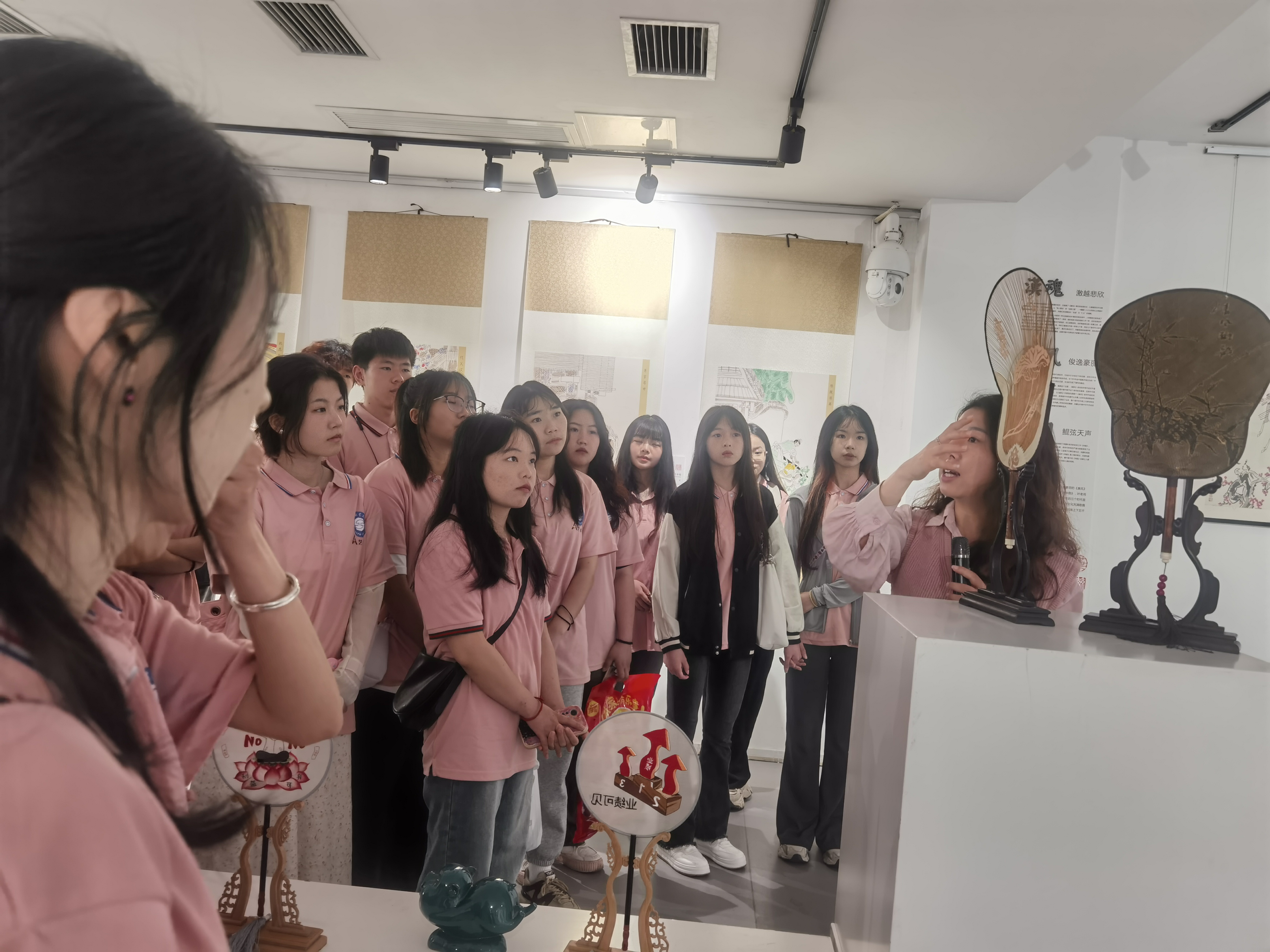 作为艺术系师生,更是对本土非遗文化兴趣浓厚,研学中了解到高槐村引进四川省非物质文化遗产“德阳潮扇”,新建传承基地和文化设计工作室,并开展以潮扇为代表的小工艺品制作体验等文创项目10余项,充分结合艺术和乡村,打造“旌韵高槐”,不少同学表示期望寻找机会学习交流传统技艺。