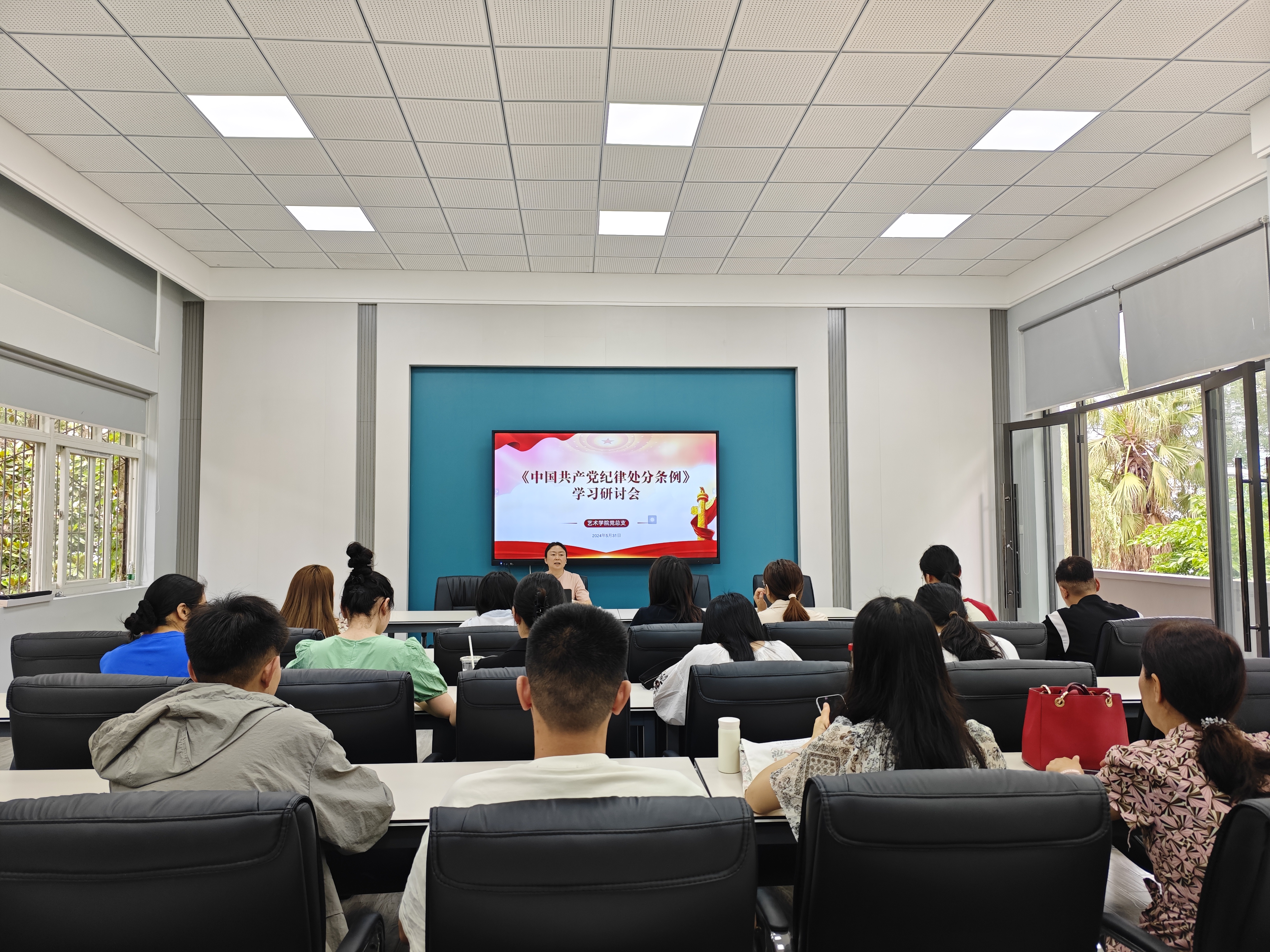 5月31日下午,艺术学院在党建活动室组织开展《中国共产党纪律处分条例》专题学习研讨会。会议由党总支书记杨晓蕾主持并领学,艺术学院全体教工党员和部分在校学生党员参加。