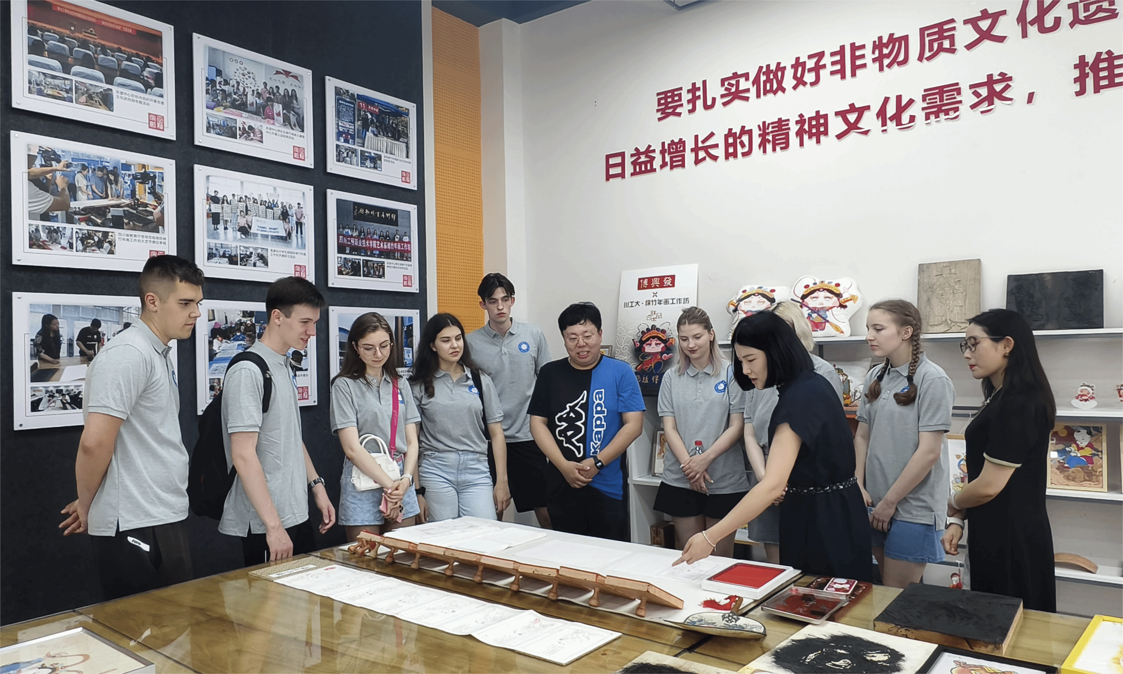 近日,来自圣彼得堡彼得大帝理工大学、波罗的海国立技术大学的俄罗斯游学团到我校参观研学。游学第一站,8名俄罗斯同学走进我校非遗传承与创新中心,探寻非遗之美。