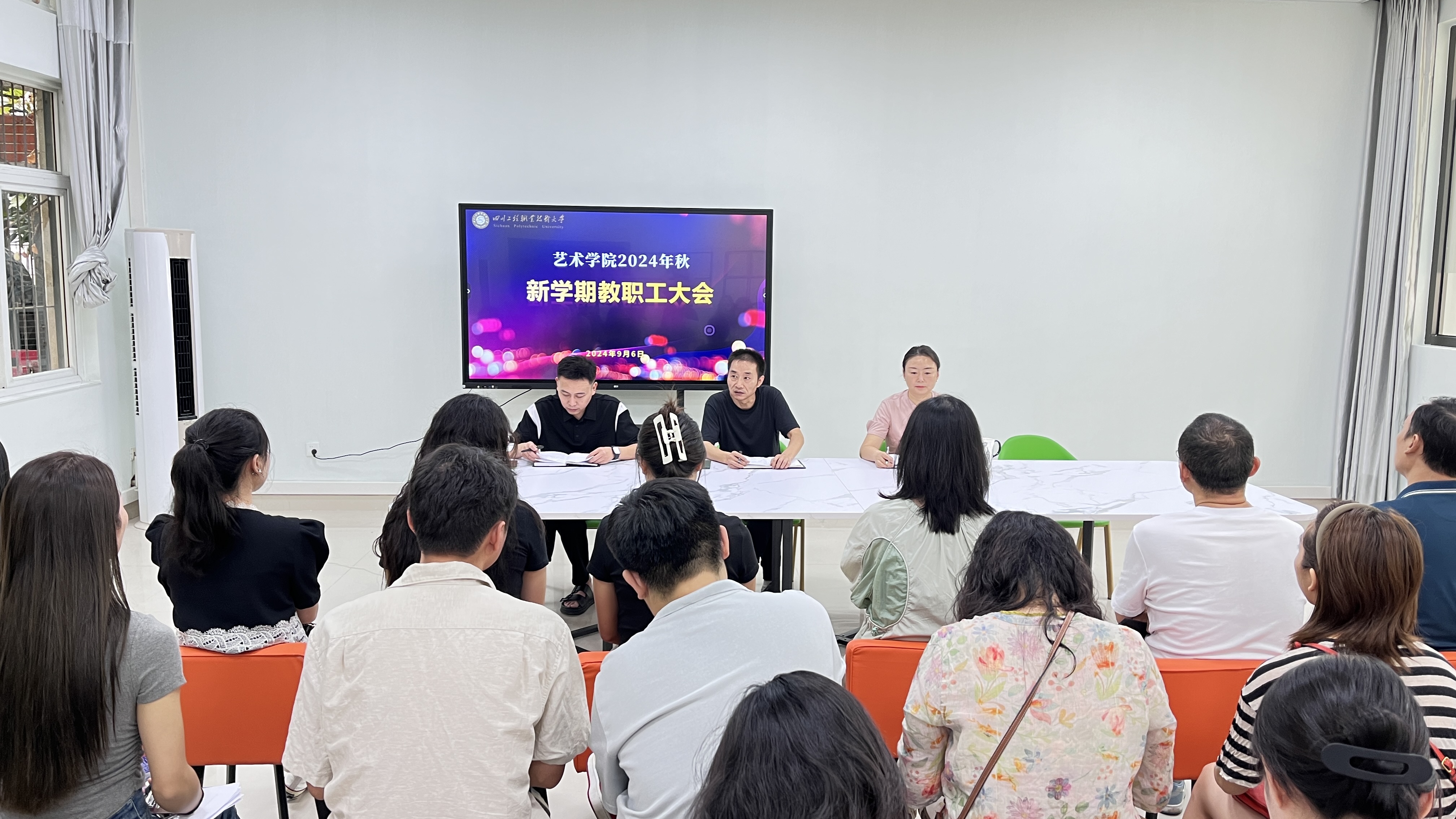 9月6日上午,艺术学院在招就办副楼一楼会议室召开新学期工作会议,安排部署新学期重点工作,全体教职工参加。会议由学院党总支书记杨晓蕾主持。