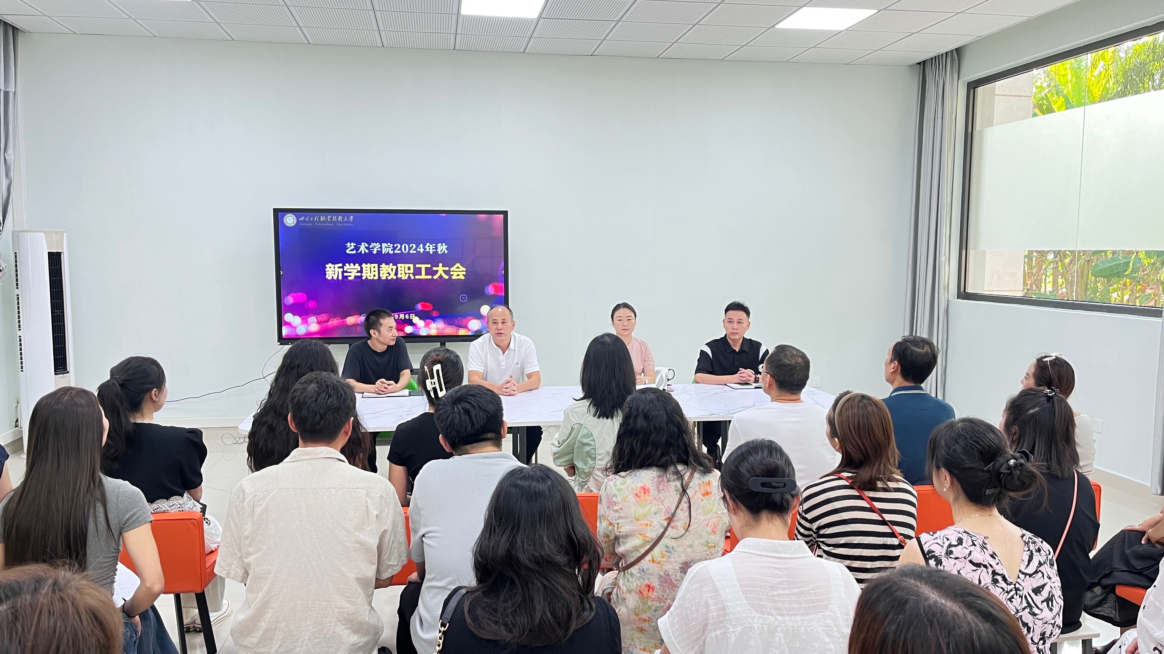 9月6日上午,艺术学院在招就办副楼会议室召开新学期教职工大会,学校党委书记蔡玉波亲临会议现场,看望全体教职工并为大家加油鼓劲。