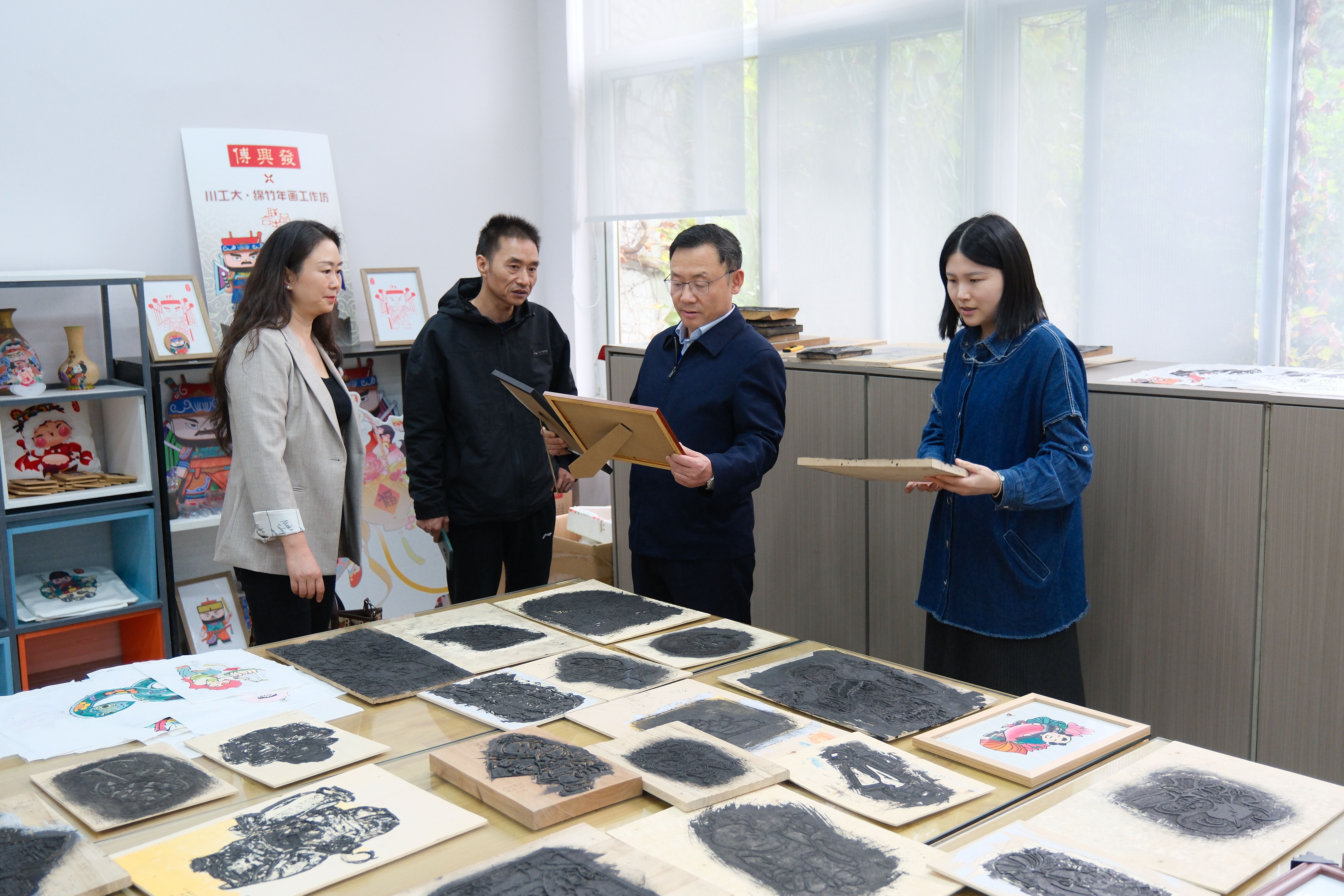 唐文辉副书记一行实地察看了艺术学院教学场地、行政办公区域、教学实训基地、非遗文化传承与创新中心、党建活动室等场所,每到一处都仔细查看,详细了解专业设置、教学运行、党政工作开展、各场所整体建设和运行等情况。在非遗文化传承与创新中心,丁艺院长详细汇报了学院近年来积极发挥高校文化传承功能、为推动本地非遗文化创新性发展和创造性转化付出的努力。唐文辉副书记充分肯定了中心的建设工作和成果,希望学院继续发挥自身优势,更好地彰显川工大文化引领的软实力。