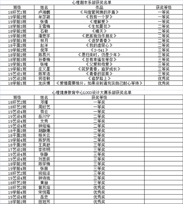 第十二届“11.25”心理健康教育系列活动系部初赛获奖名单
