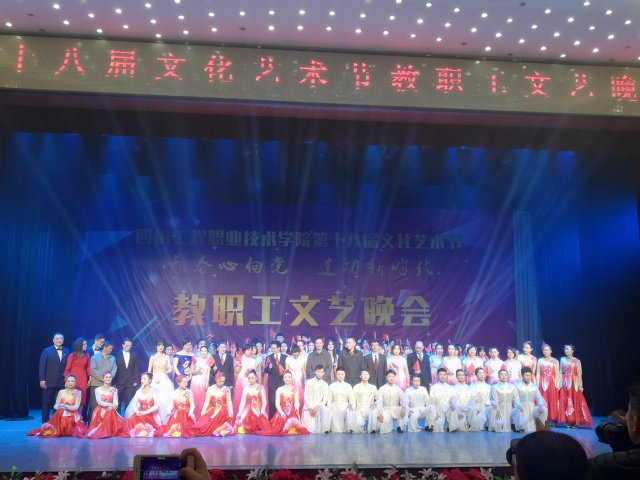 2019年11月19日星期二晚间十九点三十分我校第十八届文化艺术节教职工晚会在二教演播厅隆重举行,此次晚会由学院工会和院团委共同承办,全院各系师生和各部门教职工代表及其家属观看了此次晚会。