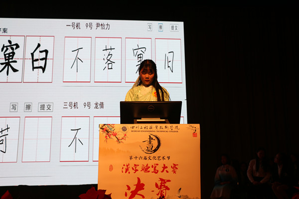 经过两轮的比赛,每组参赛人员都用心的完成,通过自己平时的积累和努力,艺术系代表队凭借综合实力赢得团体一等奖,杨丽颖、龙倩、胡希分别荣获个人一、二、三等奖。希望此次比赛让同学们感悟到汉字文化的无限魅力。(文/魏衣彤图/信息部)