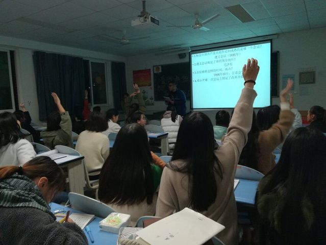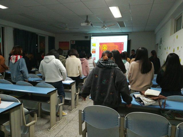 此次活动首先以“爱我中华,树我新风”为核心,通过一个短小的视频了解到了祖国由衰败到兴盛灿烂的中国发展史,同学们纷纷讨论了各自的观后感。接着通过PPT了解了中国共产党的发展史,又让同学们深刻地认识到没有共产党就没有新中国。最后通过问答,朗诵等环节使活动气氛高涨,最终以团歌结束了此次活动。
