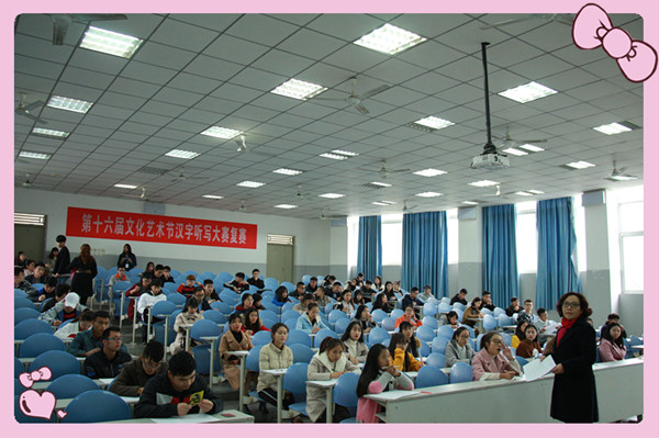 这次大赛我们艺术系每个班海选出一名学生参加,她们早早的来到现场等候。比赛中,老师通过拼音听写、词语解释要求选手们写出所读的成语。尽管这些成语都是我们所知道的,但是如果真要在短时间写出来确实还是不容易,所以大家都聚精会神,细致思考,揣摩着释义所提供的每一个信息。赛后,大家都在讨论哪个成语简单,哪个成语字又写错了,甚至有人说:“我会一辈子记住那些字”。