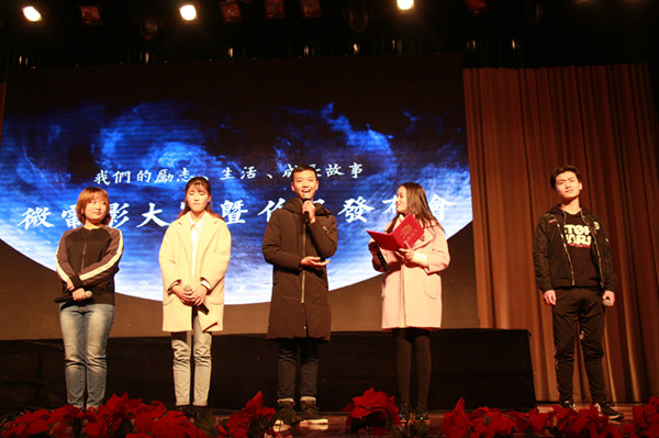 此次微电影大赛共有影视作品十个,以大学生的励志、生活、成长为主题向我们展现了当代大学生的青春风采与精神面貌。在展示自己的参赛作品前,每个团队都先上去对自己的作品和工作人员做了一个简单的介绍。由我们艺术系拍摄的《我们不一样》给观众们带来了一个励志成长故事,告诉了同学们世界上并没有那么多的天才,所有的成功都是用努力换来的。这部作品将大学生的生活与理想表现得淋漓尽致,颇具教育意义,赢得了在场观众的阵阵掌声。
