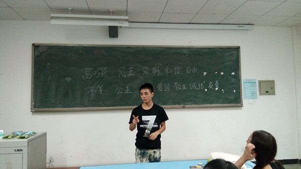 为正确树立和大力弘扬社会主义核心价值观,我校以班级为单位开展了“学习社会主义核心价值观”主题班会。在班会活动中,导师向我们阐述了社会主义核心价值观的主要内容及深刻涵义,教育学生在成才的过程中,既要做中华传统美德的传承者,也要做社会主义核心价值观的践行者,成为有担当、有责任感的好公民。同学们也踊跃发言,畅谈自己对社会主义核心价值观的认识,表示要从平时的一点一滴做起,用实际行动来践行社会主义核心价值观。