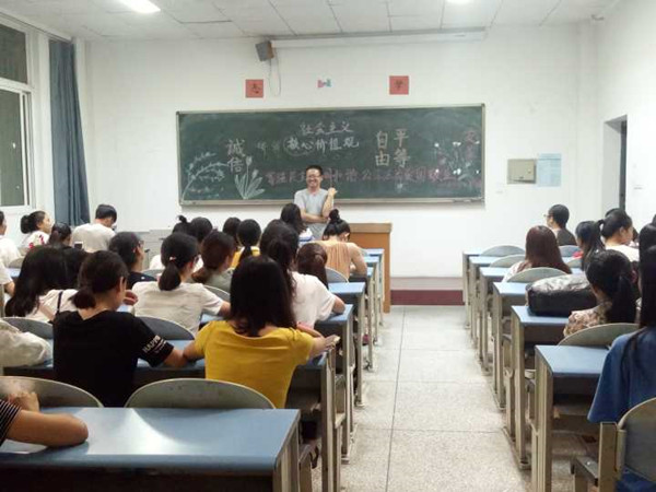 为积极响应社会主义核心价值观的号召、践行社会主义核心价值观实现中国梦。2017年9月1日下午,艺术系2015级学前教育1班全体同学在1教107教室开展了关于新学期培育与践行社会主义核心价值观的主题班会。