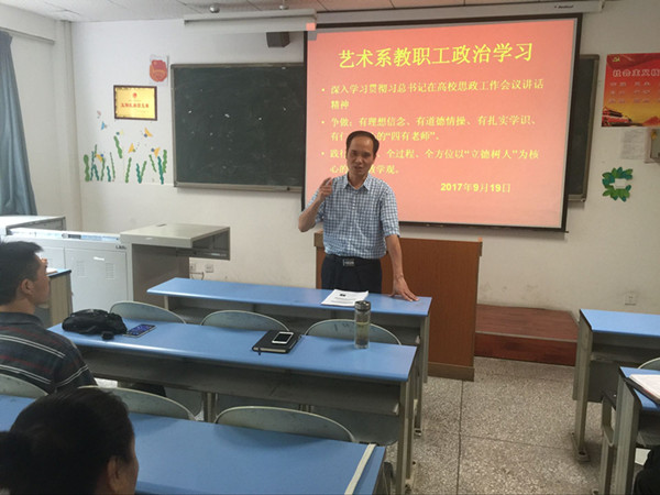 9月20日下午,艺术党总支组织全系教职工在1教204教室召开政治学习大会。学院党委副书记、纪委书记郑辅春同志出席。