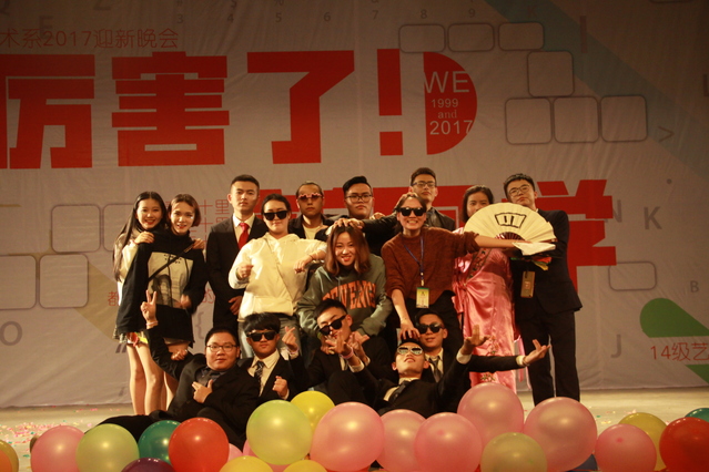 九点半,随着主持人宣布晚会结束,本次迎新晚会正式落下了帷幕,观看演出的观众有序的离开了会场,参加演出的演员们与幕后工作人员进行了合影留念。