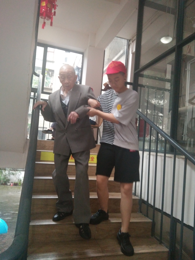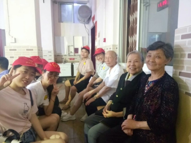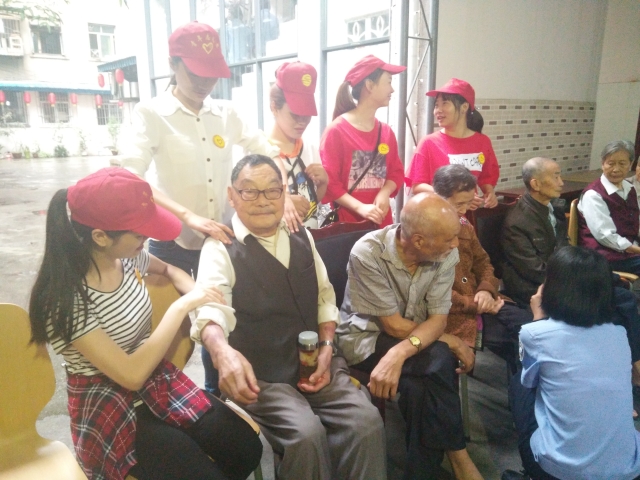 8点我们在老校门集合,分发帽子徽章,8点10我们准时出发。这时天空突然下起雨来了,大部分同学没有带伞,但是我们并没有退缩,伴着雨,带着笑,坚定的向前走去,雨水淋湿了我们的衣服,可是却淋不灭我们的热情,就这样我们到达了目的地。老人们看着我们很开心,或许是被我们冒雨也不忘来看她们所感动吧。然后我们开始分配工作一些人打扫清洁,一些人摆桌椅,一些人帮忙择菜,一些去楼上扶老人下来。一切准备就绪后,我们开始表演节目。我们学校的同学、警院的同学和敬老院的爷爷奶奶都特别积极,表演的节目也是丰富多彩,我们学校的民族舞蹈、少数民族歌曲、小合唱和警院的歌曲、拉丁舞再加上奶奶展示的广场舞,场面真是好不热闹!