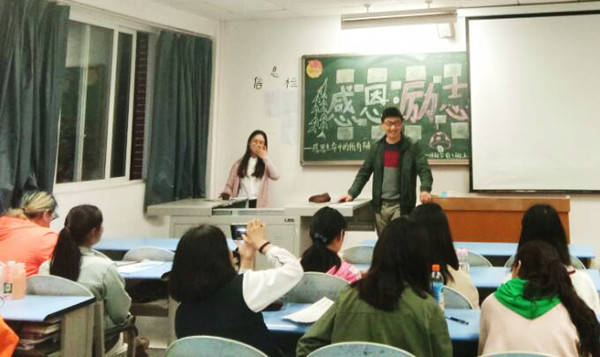 2017年4月9日下午18点30分,2016级学前教育三班的感恩励志主题班会顺利召开。此次班会可谓又是给三班的小可爱们喝上了一锅满满爱意的鸡汤,更是将一个团结友爱的大家庭体现得淋漓尽致。