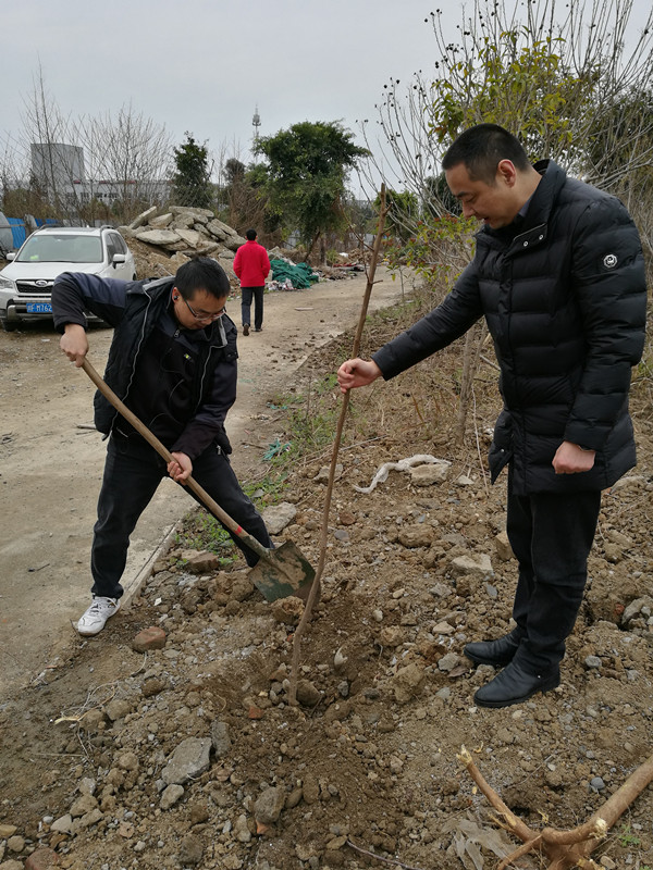 大家来到现场便捞起袖子,准备大干一场的范儿十足,个个都跃跃欲试,想要拿到铲子亲手种下一棵树,活动现场,气氛非常欢乐。在植树过程中,许多同学虽无植树经验,但这并没有影响大家的积极性,挖坑、栽树、填埋、浇水,整个树林交织着同学们的欢笑与汗水,这些必将成为大家值得永久存留的诗篇。