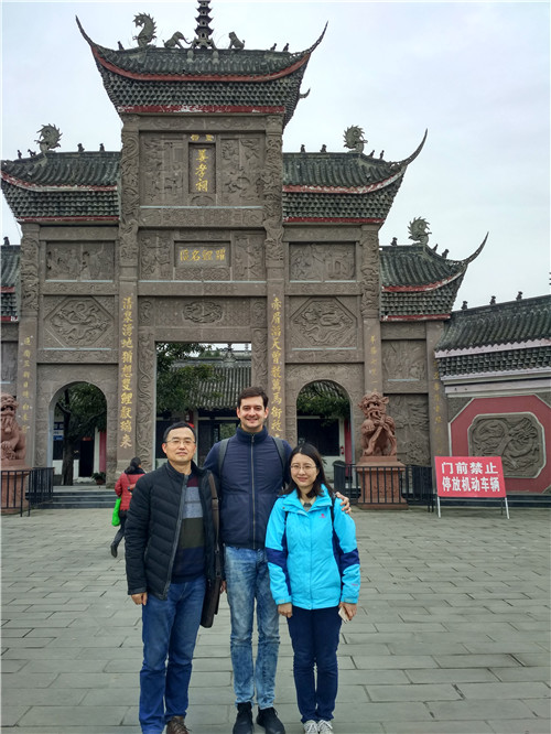 3月24日,来访克罗地亚艺术设计专业教师Marko在艺术系邓斌老师和外语系钟敏老师的带领下参观绵竹年画村和孝泉古镇。