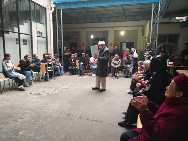 虽然立冬之后,天气越来越凛冽了,但是大家还是热情满满的来到了校门口准备此次活动。我们一行人按时来到了旌阳区社会街道福利院,所有志愿者都很热情的和老人们聊天,帮忙摘菜,打扫卫生,做一些我们力所能及的事。没多久警院的志愿者也来了,我们就和警院的志愿者们一起给老人们表演节目,利用到我们所学的知识,我们给老人们唱了歌,跳了舞,警院的同学也表演了一些节目。我们的热情也感染了谢谢老人们,他们也积极的,主动的表演起节目来了,有唱歌的,还有跳舞,真的是老当益壮。
