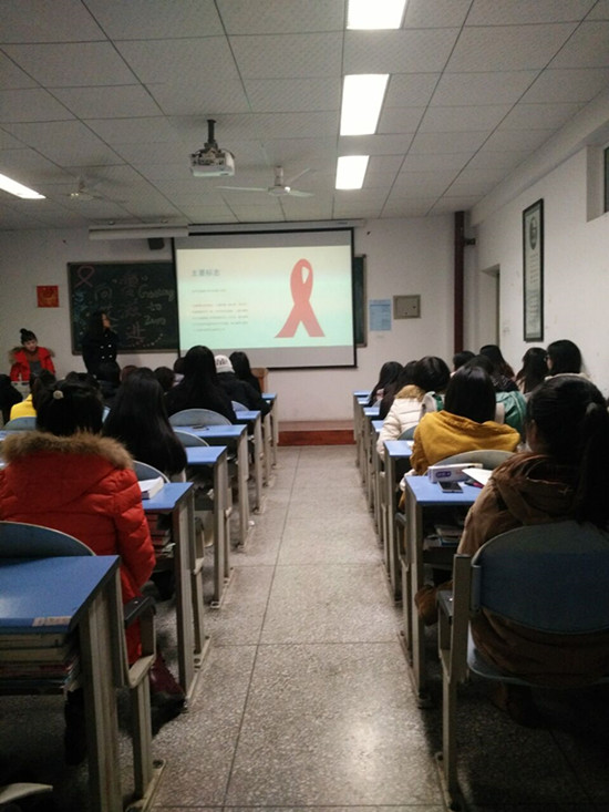 艾滋病是一种病死率极高,并且目前没有治愈的药物和方法,但可以预防的严重传染病。为了让同学们进一步了解艾滋病,更加有效地预防艾滋病。2016年11月27日晚7点30分2015级学前教育1班同学在1教202举办了向“零”艾滋迈进主题班会活动。
