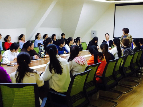 2016年10月21日,是学前教育14--2班在艾贝尔幼儿园两周见习生活的最后一天。上午10点,在艾贝尔幼儿园四楼会议室召开了此次见习的总结座谈会。幼儿园邱园长、宋园长,廖老师,霍老师以及校内指导老师尹老师和各位同学参加了座谈会。