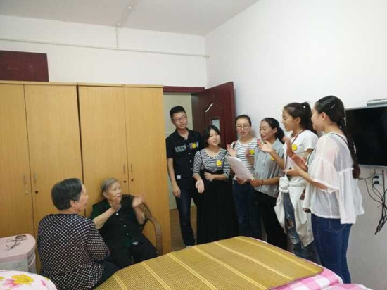 在活动开展期间,青年志愿者们兵分两路:一部分志愿者为老人们表演精彩的歌唱老歌的节目;其余志愿者则在负责人的带领下,去老人们的房间为老人打扫房间,陪老人们聊些家常。虽然过程有点累,但看到老人们因我们的到来而露出的灿烂的笑容,那一刻真的感觉一切都是值得的。