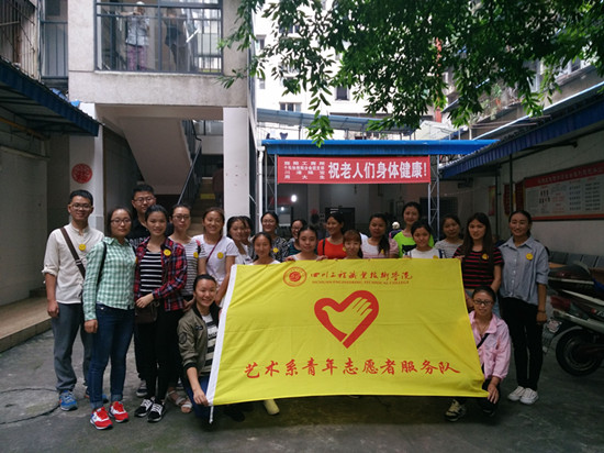 在2016年9月13日下午艺术系志愿者们在负责人的带领下来到旌阳区社会街道福利院,以“夕阳最美,关爱老人”的主题开展我们的志愿活动,关心慰问敬老院的孤独老人。活动旨在向敬老院的孤寡老人献出志愿者们的热情和祝福。