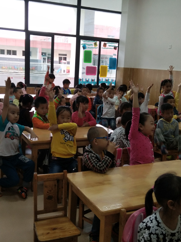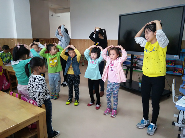 虽然天下着毛毛细雨,但是这并不能阻挡我们志愿者们去帮助别人,服务别人。我们到达活动地点之后,负责老师将我们分到了两个班级,志愿者中有学前教育专业的同学,这样在服务别人的同时也提升了自己的专业技能。幼儿园的孩子们真的太可爱了,我们教了他们一些好玩儿的简单的手指游戏和歌曲,比如《三只小熊》这些脍炙人口的童谣和前不久兴起的“可爱颂”,都激发了小孩子们的兴趣,当然也让我们的志愿活动得到了很好的反响!只要能够帮助到别人就是我们最初的愿望!