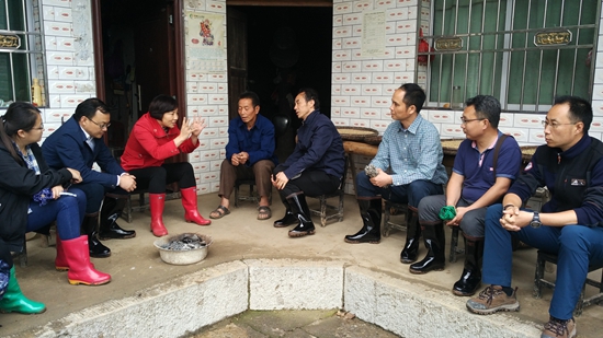 司徒书记一行与朝天区委、区府主要负责人蔡邦银书记、区委副书记、区长伏玉琼等进行了座谈,听取了朝天区脱贫攻坚进展情况介绍,双方就进一步合作进行了探讨。区委副书记、区长伏玉琼陪同司徒书记一行深入平均海拔1100米的罗圈岩村,踩泥泞、走农家、问冷暖、谈规划……当天的朝天区天气预报大风预警,罗圈岩村更是风雨交加,但所到之处的每一个农家小院都增添了生机和温暖。在罗圈岩,提起四川工程职业技术学院、提起学院派来的黎书记,乡亲们脸上都挂着亲人般的微笑和希冀!机电系、经管系、艺术系党总支负责人在司徒书记和郑书记指导下,也分别与各自对口帮扶的家庭进行了对接、访谈,宣讲了党的精准扶贫政策,了解他们的实际困难,以便向学院扶贫工作组汇报,更好制定、实施或调整帮扶措施。艺术系邓斌教授此前已赴罗圈岩村进行了实地调研,就罗圈岩生态农产品包装、标志设计等进行了先期工作,初稿已完成,正在征求罗圈岩村乡亲们的意见。