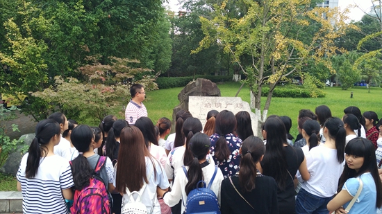 为了让新生更好的熟悉校园环境,了解学校的历史,体会工院文化,9月20日早上8点半,我系组织2015级新生参观校园。担任艺术系2015级班级导师的我系党总支书记王静老师、学院团委副书记邱黎明老师、系副主任丁艺老师、2015级各班的辅导员(班主任)老师以及部分团总支学生分会学生干部参加了本次活动。