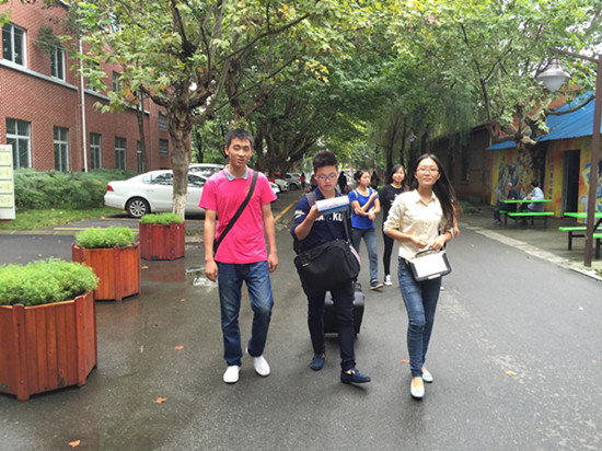 志愿者们热情的迎接着新同学,带着他们领床上用品,找宿舍,一路欢声笑语,直到他们安顿下来才离开。(未完待续)