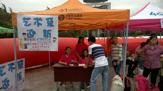 匆匆开学季,缕缕桂花香。9月5日,艺术系的志愿者们已早早地等在了校门口,时刻准备着迎接学弟学妹们的到来。虽然还未到新生正式报到的时间,但是新同学们已陆陆续续地来到了新校园。