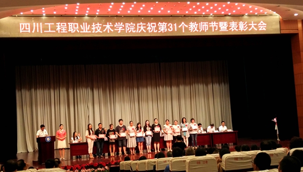 学校9月8日下午隆重集会,庆祝第31个教师节,表彰2014-2015学年先进。艺术系邓英老师被评为本年度永好教师教育教学质量奖,另有一批先进个人和先进集体受到表彰。