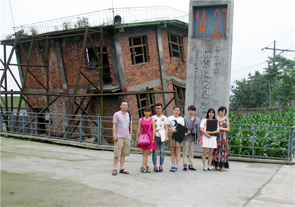 6月16日由艺术系谢建华老师和邓斌老师带队,带领项目组的5位成员,沿途调研了什邡罗汉寺、穿心店地震遗址、钟鼎寺、红峡谷等景点,并进行了现场写生和素材收集,为进一步的创作打下了基础。至此,由2013级装饰设计1班李思潼、刘强等五名学生参与的省级大学生创新创业训练项目之“手绘旅游地图设计——以德阳市为例”现场调研阶段已接近尾声。