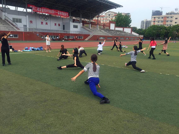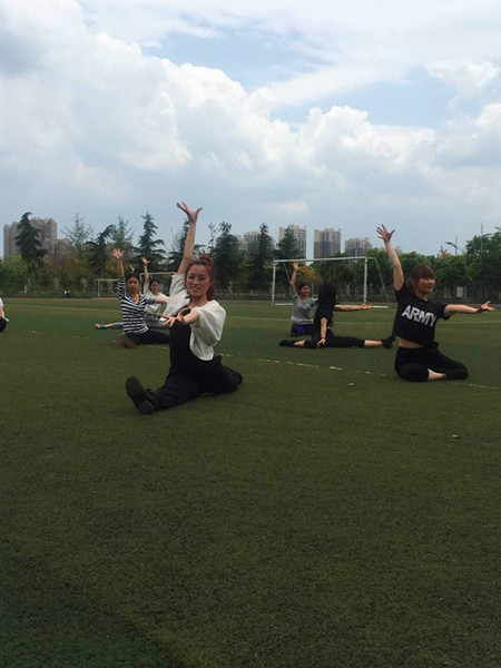 4月20日13:00,魏老师和一群美丽的姑娘暂时忘却了午后的疲惫,来到了新足球场,随着动感十足的音乐,活泼热烈的舞蹈,她们的笑容是那么自信,每一个动作都是那么有力,但是这还不够,在魏老师的严格要求下,每个动作必须要精准,反复训练,以达完美。