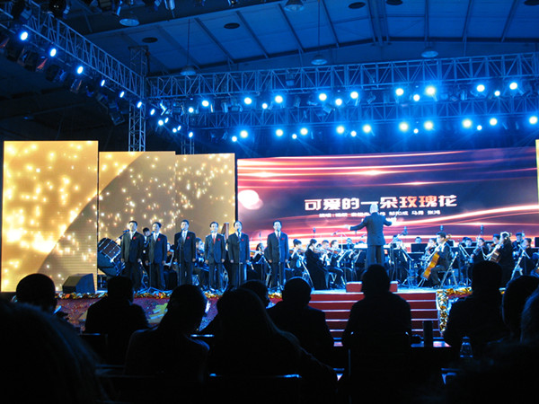 晚会在四川爱乐乐团一曲《歌剧魅影》的激情演奏中拉开帷幕,然后又演奏了几部著名电影的主题曲,有《007》、《狮子王》、《龙猫》、《走出非洲》、《泰坦尼克号》、《加勒比海盗》,场面令人十分震撼,掌声一浪高过一浪。紧接着,艺术系老师吴蕾、文佳、孙小宏、余南、魏危平演唱了一首苏联爱情歌曲《山楂树》,曲调悠扬潺潺,词语意境深绵,流转着浓郁的纯真、优美、浪漫风情;艺术系藏族学生斑马哈姆与四川爱乐乐团合作的一曲《绒花》,以委婉抒情的民歌风曲调,歌颂了在革命年代的那种牺牲和奉献精神;学院男老师表演了流传在中亚草原上的一支哈萨克民歌《可爱的一朵玫瑰花》;艺术系吴蕾老师与艺术团合唱队合作的《我爱你中国》,质朴无华,却有动人心魄的激情,让每一个炎黄子孙心中都荡漾着对祖国的崇高之爱。最后,晚会在优美的交响乐中步入尾声。