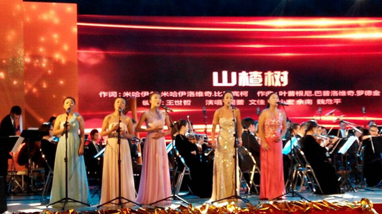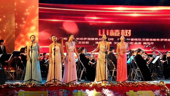 在我院艺术节开幕式上,音乐舞蹈教研室老师们表演的小合唱《山楂树》受到观众一致好评;在四川爱乐乐团的伴奏下,吴蕾老师带领学前教育专业学生合唱了《我爱你中国》,精彩绝伦的表演引来雷鸣般的掌声,使晚会再一次掀起高潮。通过此次演出,学生们提高了学习兴趣,收获了舞台表演经验,受益匪浅。