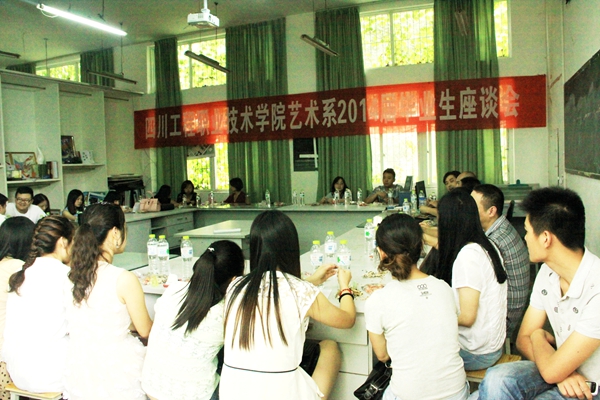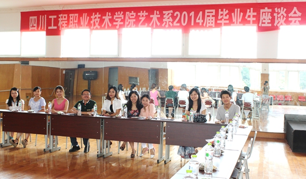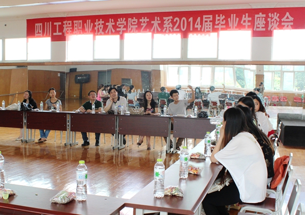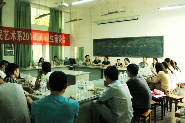 2014年6月25日下午三点,艺术系组织2014届毕业生分别在艺术设计室和艺体中心举行了座谈会,艺术系主任张友、党总支书记王静、副主任丁艺,以及艺术系专业任课老师与毕业生们一起参加了座谈会,会议分别由何烛明老师和邓英老师主持。