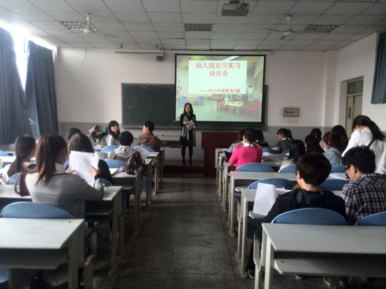 为了迎接第7周的幼儿园见习实习,2014年4月3日上午11点,学前教育13级3班的全体同学在3教323召开了幼儿园见习实习动员会,邓英、杨文婷、赵铁柱三位指导老师参加了本次动员会。