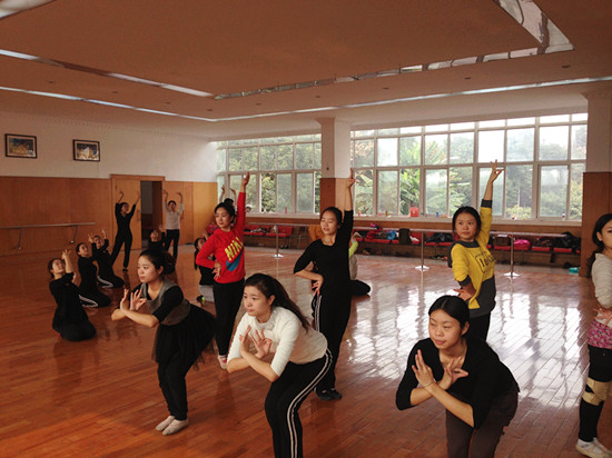 “经过彩排,基本了解各系的情况,今年的比赛火药味很浓,因为大家都很强,但是我们有信心,相信我们能够脱颖而出”,杨燊同学,作为《喜鹊喳喳喳》的主跳,自豪地说到。卿馨同学接着说:“这次舞蹈大赛,我们准备了很久,尤其是赵老师对每个舞蹈动作、表情、神态都要求精确到位,有时为了纠正一个动作,就要练一个小时,但是我们很享受这个过程,学到很多东西。” “是呀,是呀”,杨璐瑞同学迫不及待的说,“我们经常排练到很晚才回宿舍,累的腰酸背疼,特别是正逢女生生理期的时候更让人苦恼,但是我们‘痛并快乐着’,相信通过我们共同的努力与付出,在舞蹈大赛中一定会取得骄人成绩。”