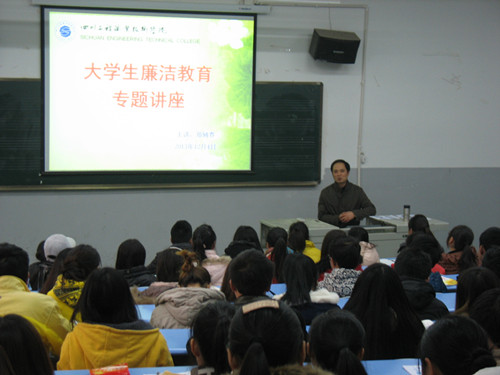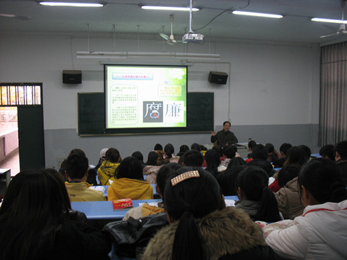 2013年12月9日下午,学院纪委书记郑辅春受邀来到艺术系,在旧图书馆阶梯教室二楼为我们的学生做了“大学生廉洁教育”专题讲座。本期党校全体学员、学生党支部全体党员、本学期拟发展的18名发展对象、团总支、学生会全体成员以及大一、大二全体班团干部到场参加了这次讲座。