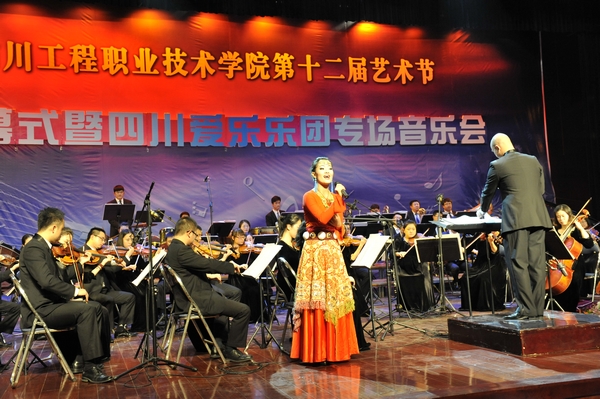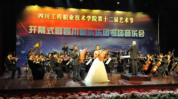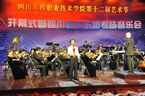 10月18日晚7:30,学院第十二届艺术节开幕式暨四川爱乐乐团专场音乐会在二教演艺厅隆重举行,来自四川爱乐乐团的60位艺术家为我校师生带来了一场精彩绝伦的交响音乐会。德阳市市级机关、企事业单位的有关领导以及所有在家的院领导、各部门负责同志、老师和学生代表近600人齐聚现场欣赏这场难得的交响音乐会。学院党委书记司徒渝在艺术节开幕式上致欢迎辞并宣布第十二届艺术节开幕。开幕式由学院党委副书记、副院长杨跃主持。