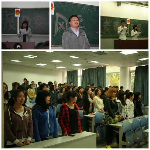 2012年4月11日下午六点半,学前教育12-3班与机制工艺12-3班在三教126开展了以“青春展风采”为主题的团组织生活,本次团组织生活以演讲形式为主,两班同学分别阐述了自己对于青春的理解。