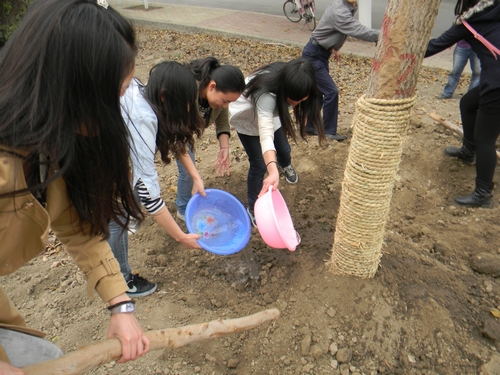 2013年3月12日下午,团委、学生处、艺术系师生在新校区隧道入口旁进行植树活动。这样的活动对我们来说很有意义,不仅可以丰富同学们的课余生活,还可以让我们感受到劳动的快乐。