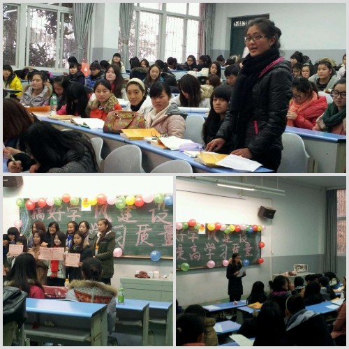 2012年12月13日下午四点半,在旧图书馆二楼阶梯教室,开展了由2012级学前教育1、2、3班团支部联合举办的“搞好学风建设、提高学习质量”的团组织生活。