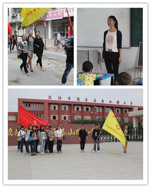 为响应党“创先争优”的伟大号召,喜迎国庆的到来,国庆前夕我系11级入党积极分子、共青团员为主要力量的志愿服务队再一次于2012年9月27日下午3点,前往德阳市八角井镇的雅居乐泰山路小学进行志愿支教服务,以协助泰山路小学推动“乡村学校少年宫项目”的开展。