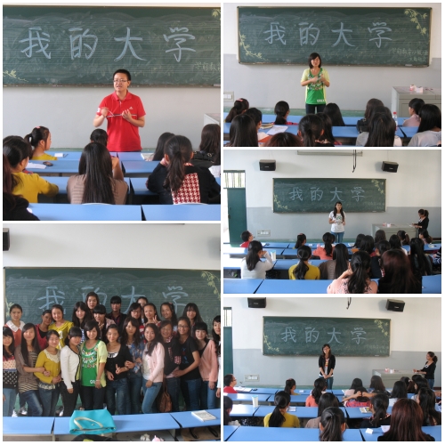2012年9月28日下午3点,学前教育12-1的同学在旧图书馆二楼阶梯教室开展了以“我的大学”为主题的班会活动。班会由班长邱青川同学主持,班级导师王静老师、辅导员尹存老师及全班同学参加了此次活动。